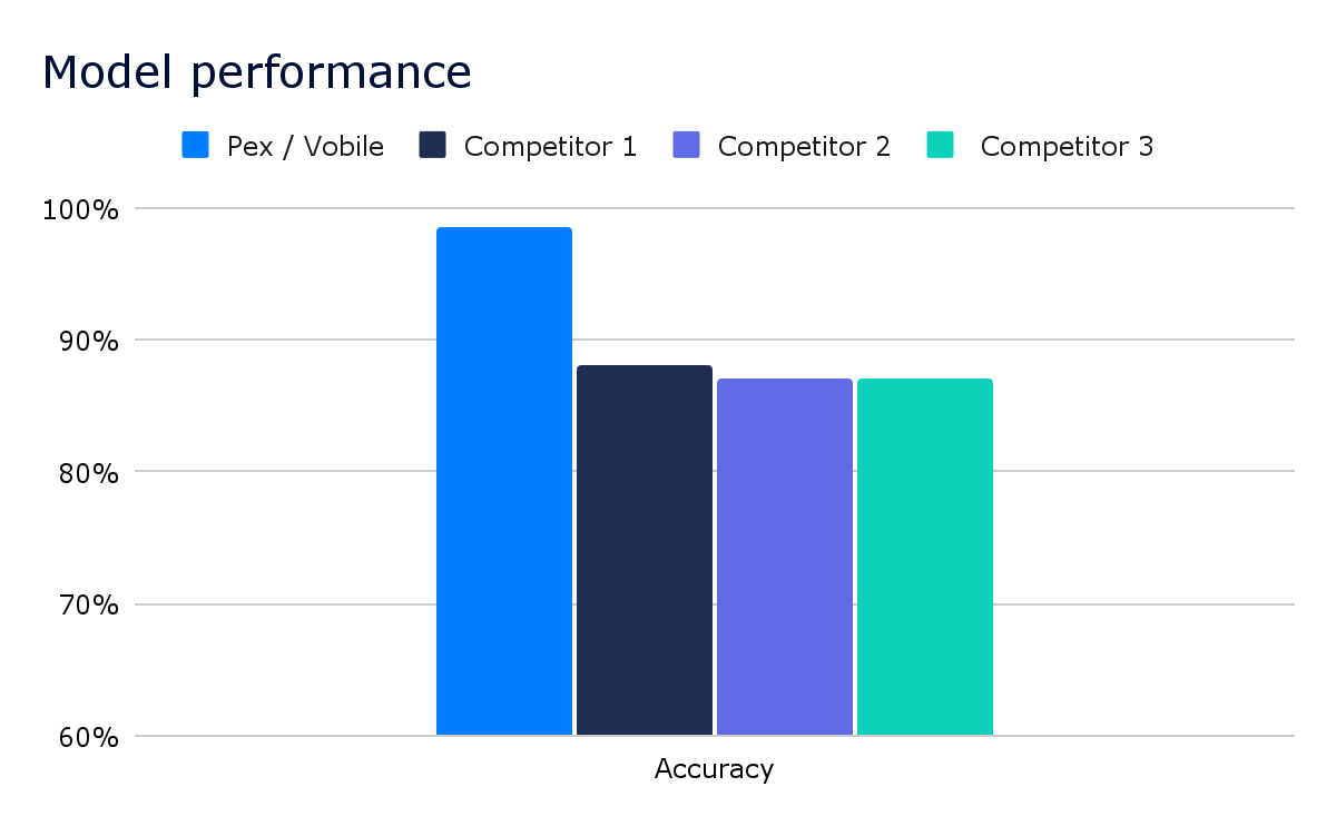 Our model has higher overall accuracy compared to leading competitors. Our model is continuously being improved to accommodate the latest iterations from AI-generators.